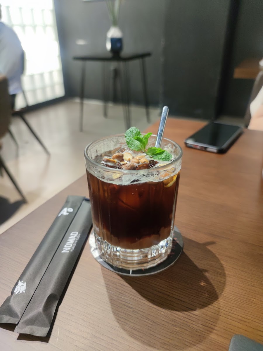 Nomad has created a very comfortable atmosphere for sitting and relaxing. Akin to a cocktail bar, the ambience is very chic as is the sort of jazz that was playing when we visited. Unfortunately, I felt that the greatest emphasis has been placed on style while substance in terms of quality drinks on offer was somewhat lacking. We sampled both the apricot cold brew as well as the orange cinnamon cold brew and found that neither was anything like as special as other versions of the same drinks that we have tried elsewhere. Would love to love this place but can’t make myself do so at this point. May come again to try different drinks but something tells me the disappointment will just grow. Even so, I’ve given four stars as it’s the kind of environment many people will enjoy, well done in its own right.
